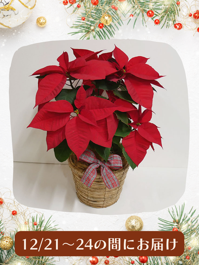 鮮やかな赤が印象的なポインセチアは、クリスマスを象徴する定番の花。華やかさと上品さを兼ね備えた存在感で、空間を一気にクリスマスムードに彩ります。