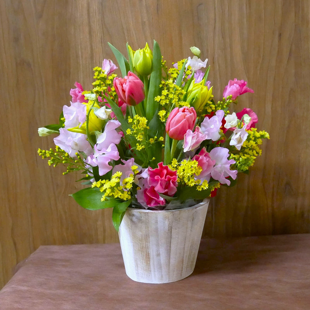 春を代表するお花、チューリップ。花言葉に「博愛」「思いやり」などがあります。お誕生日はもちろん、送迎需要が高まる3月。大切なお取引先様、お世話になった方、ご友人への贈り物にもぴったりです。